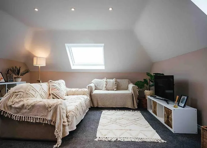 Boho Loft In Somerset - Private Parking 拉德斯托克设有设施齐全的厨房和配阳台,沙发 和办公桌的客房. 住宿场所距离亚利桑卓跑马场有2.7公里,它距离法林顿公园高尔夫俱乐部不到4.8公里.